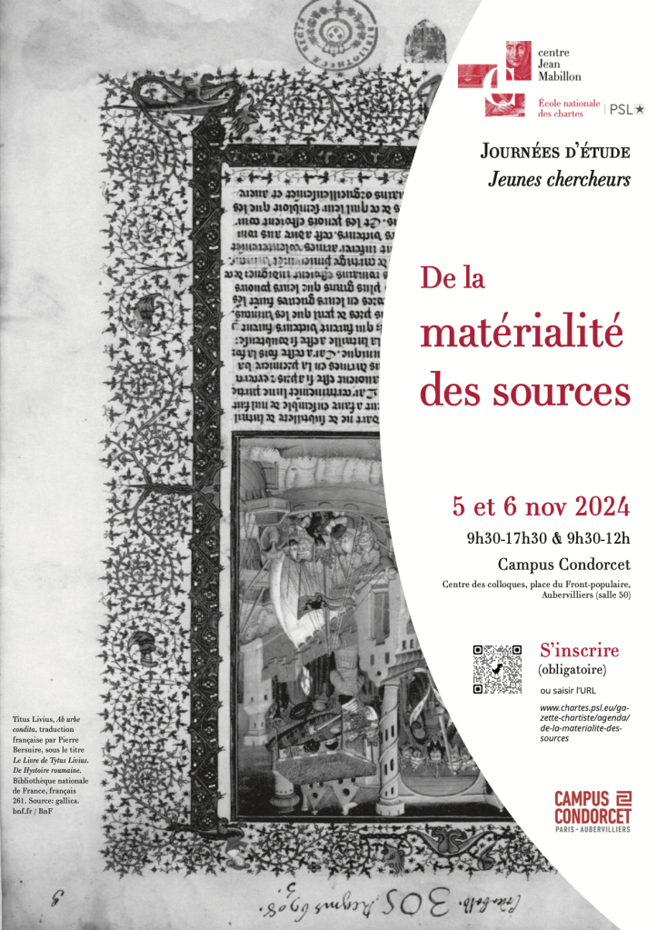 « Dans ce contexte, l’objectif de notre journée d’études est d’aborder la source comme objet matériel et d’étudier les enjeux liés à sa conservation et restauration, au transfert d’un support à un autre, à la distinction entre l’unique et le multiple, ainsi qu’à l’impact de la révolution numérique sur la production et la préservation des documents.«